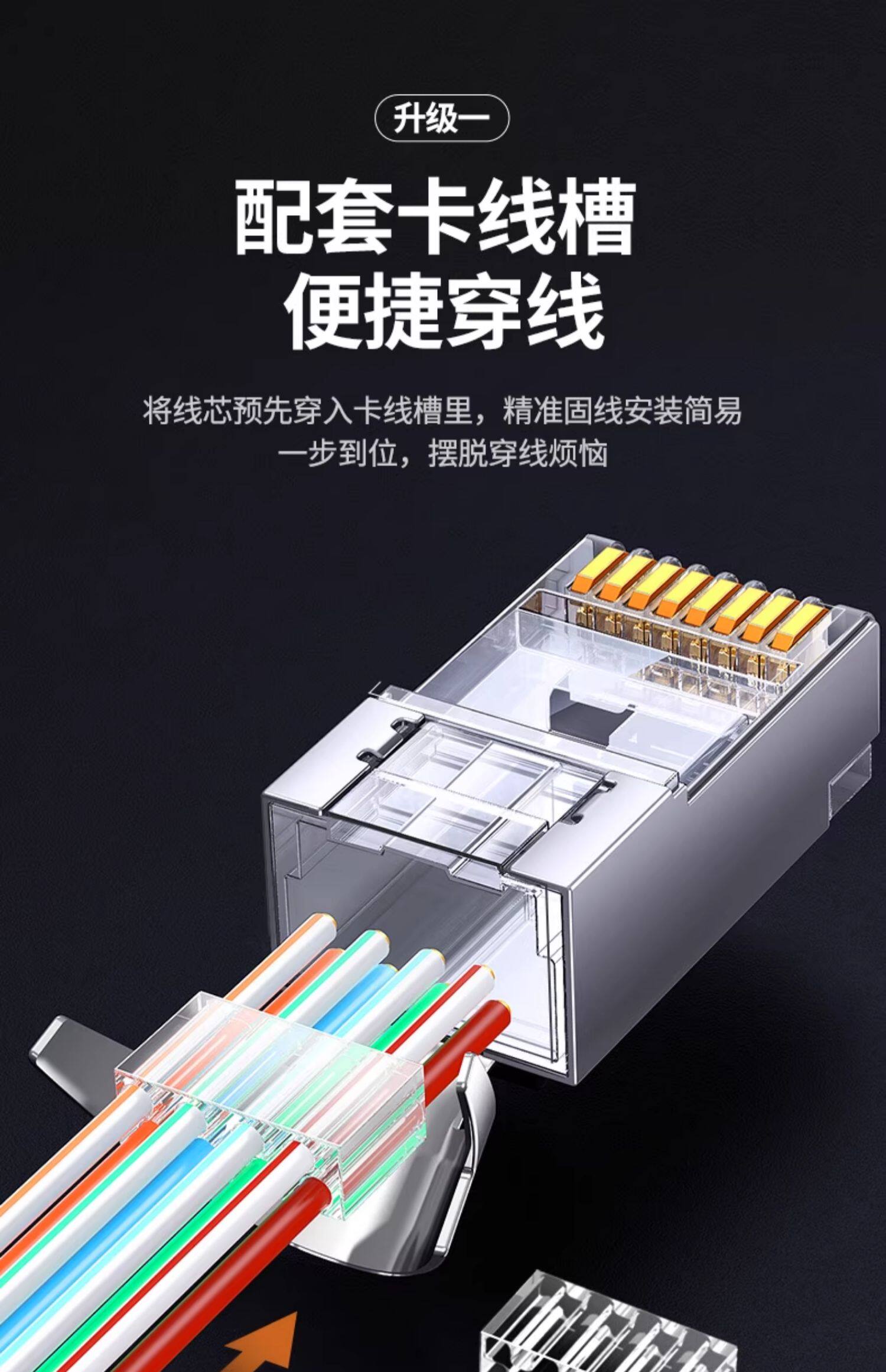 2、根据需要选择T568A/B的方式接线,将导线槽固定在网线上 (以T568B示范)