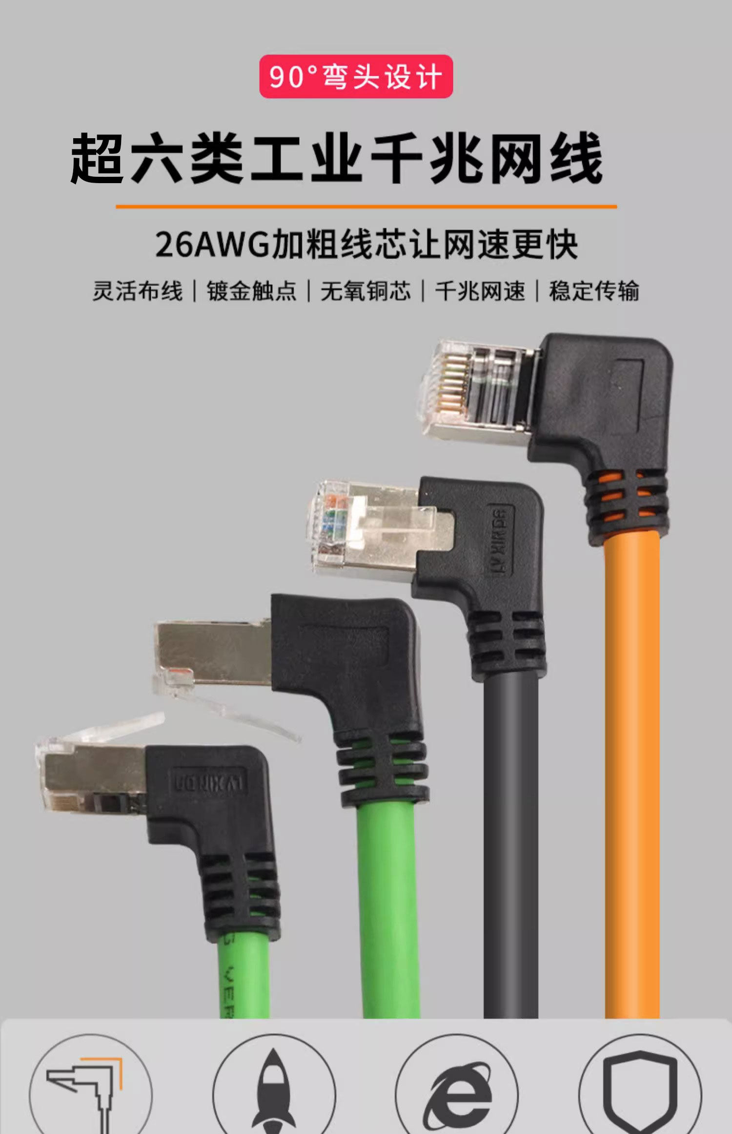 26AWG加粗线芯让网速更快灵活布线|镀金触点|无氧铜芯|千兆网速稳定传输