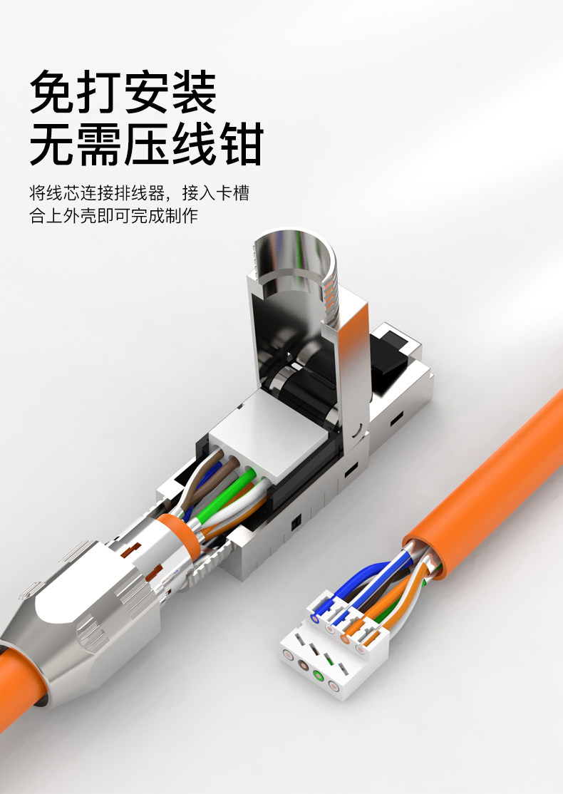 2.免打安装无需压线钳 将线芯连接排线器,接入卡槽合上外壳即可完成制作