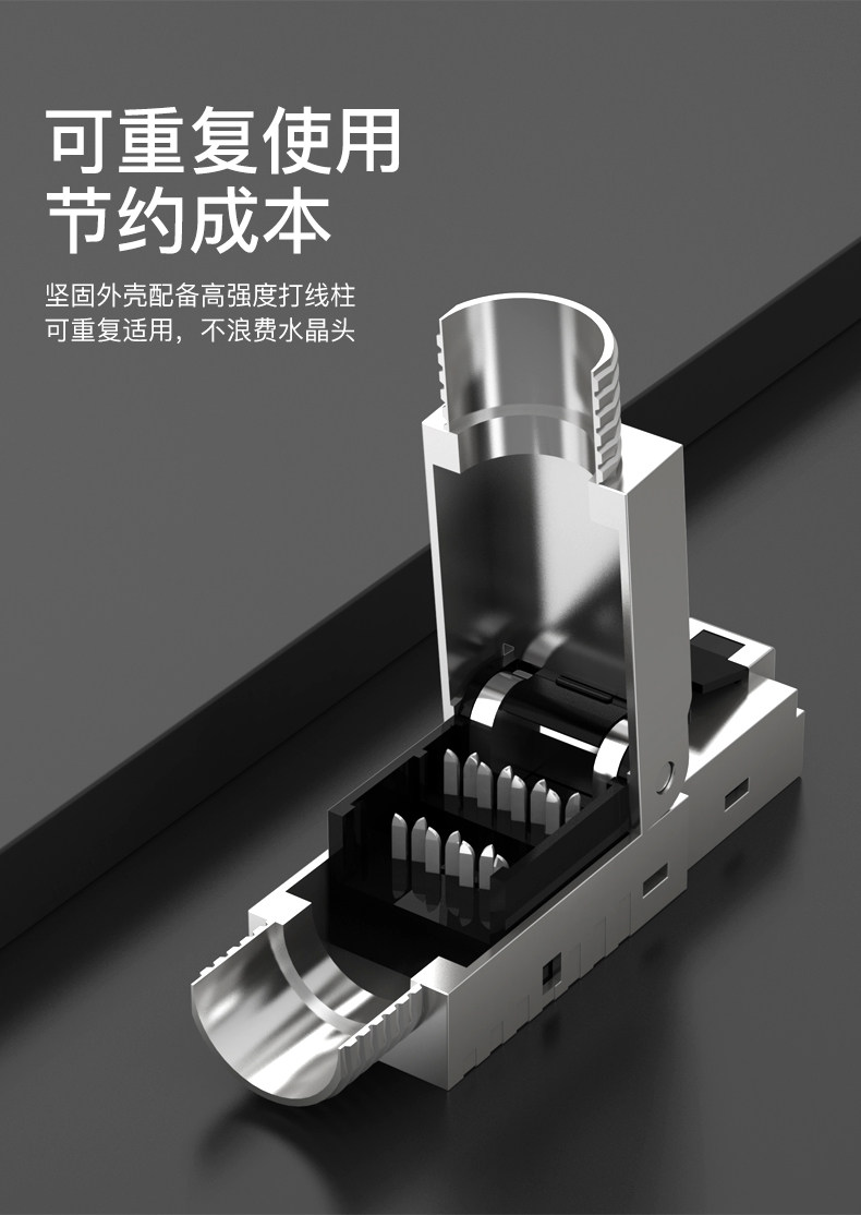3.可重复使用节约成本 坚固外壳配备高强度打线柱可重复适用,不浪费水晶头